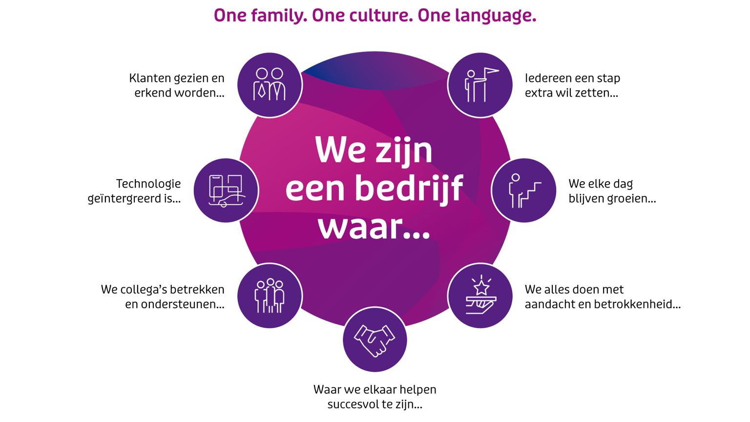 Onze collega's, cultuur en groei vormen de basis van ons bedrijf. Onze cultuur bepaalt wie we zijn, hoe we samenwerken en hoe we samen onze doelen realiseren.